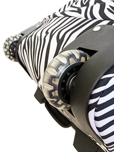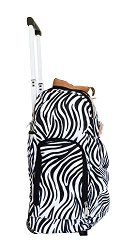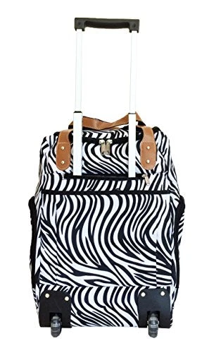 Details: 1 spaciously large compartment zips open from top 3 large pockets located in front and side 1 small pocket in back 2 sturdy wheels and stoppers at the bottom Extendable telescoping handle system Carrying handles on top 3 years manufacture warranty