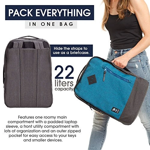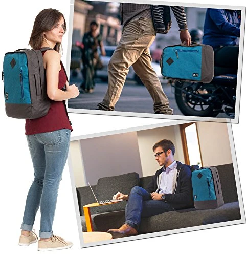 - SUPER COMFORTABLE! Carry everything you need without breaking a sweat or your back. Featuring adjustable shoulder straps and a padded back, your new bag is designed to be kind to students, campers, digital nomads and anyone with an active lifestyle. You can also carry it like a briefcase by tucking the shoulder straps in the designated compartment and using its side padded handles. Travel in style minus shoulder and back cramps.