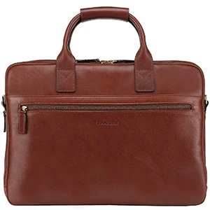 - 4 bottom studs make this leather attache case to stand upright on its own without falling over; Outside back pocket has a cotton fabric strap to slide over a suitcase handle and hold it in place while rolling through airport. Ideal bag for use it as an attache to travel to and from work with papers and work documents. Suits as a executive briefcase, messenger bag, laptop bag