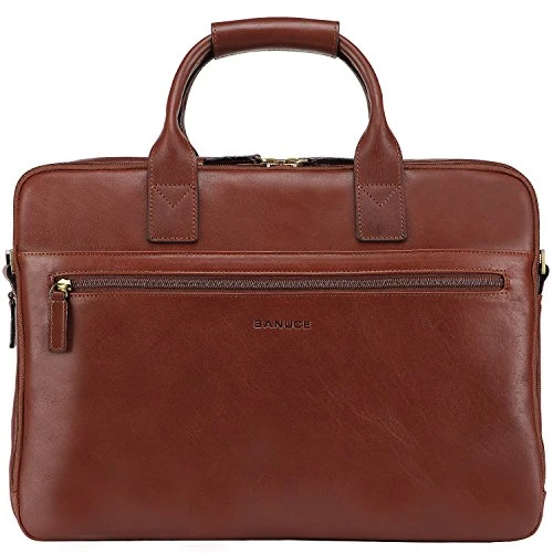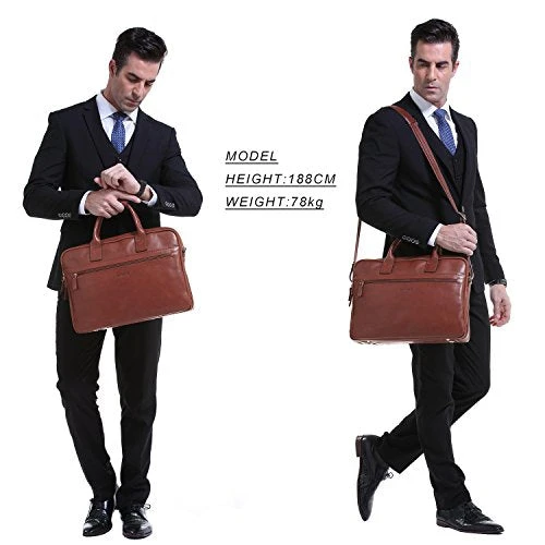 - Vintage and professional brown briefcase look. Comfortable double leather handles drop 4.1″ (10.5cm). A button strap to hold the handles together; An extra detachable shoulder strap is made of vegetable tanned leather and cotton fabric, matched with zinc alloy metal in retro color. Besides, the shoulder strap with a leather pad, which it won’t drag on your shoulders or wrinkle the top shoulder part of your suit