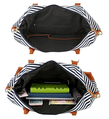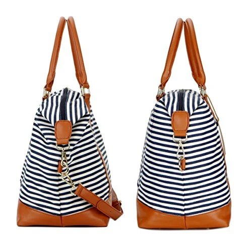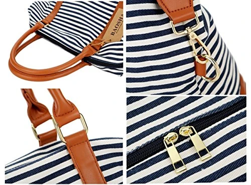 BAOSHA HB-28 Ladies Women Canvas Travel Weekender Overnight Carry-on Shoulder Duffel Tote Bag With PU Leather Strap