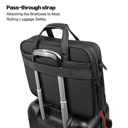 - EASY TO CARRY: A flat pass through strap along the back fits most telescoping handles, to secure the laptop briecase slip over the handle of any rolling luggage for hands-free transport and make traveling simpler