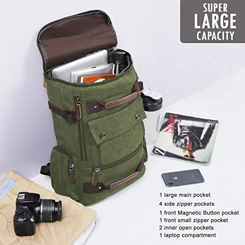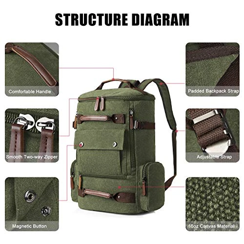 - Material: Mainly made of canvas material and the lining is polyester cotton, lightweight and durable. Canvas is always in trend and is combined with all fabrics and colors, suitable for men or women to use it as a fashion travel backpack or casual daypack.