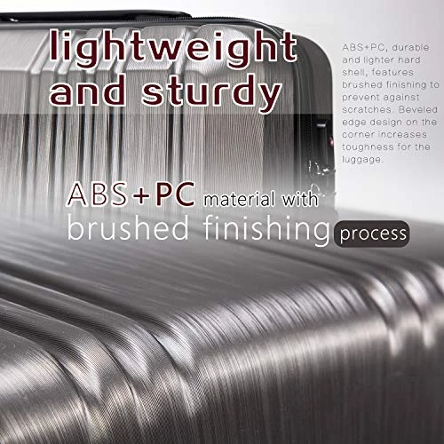 - ABS+PC material, durable and lighter hard shell, features textured finish to prevent against scratches. The beveled edge design on the upper part increases toughness for the luggage.