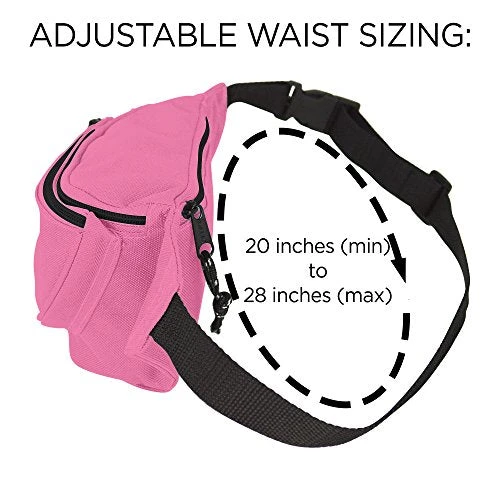 Details: DALIX Small lightweight Fanny Pack features 3 useful Compartments; 2 compartments in the front and rear, and 1 Main Compartment in the Middle. The front may be used for holding small accessories such as keys, chapstick, tissue packs, mints/gum, and loose change. The middle Main Compartment (6.5″ long) can fit phones, small bottles, brushes and any other fast grab items such as wallets, sunglasses, or small snacks. The rear compartment is for Extra Concealment items such as bills, and watches of any kind. With it being well-concealed by the waist, this rear compartment will protect from pickpocketers swiping important items. This fanny pack is also discrete enough to conceal under the shirt while walking. It features an easy-to-buckle adjustable belt snap for quick removal and transfer. The straps are adjustable to fit a total length between 20 inches (shortest) and 28 inches (expanded). Be aware that wearing clothes will shrink the circumference area.