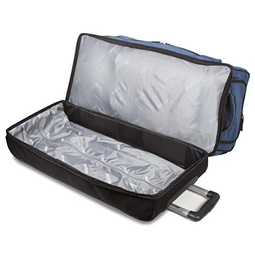 Details: The Dejuno drop bottom duffel bag is roomy, rugged and secure. Features multiple pockets inside and out that help organize your travel essentials. Smooth rolling in-line skate wheels makes traveling a breeze.