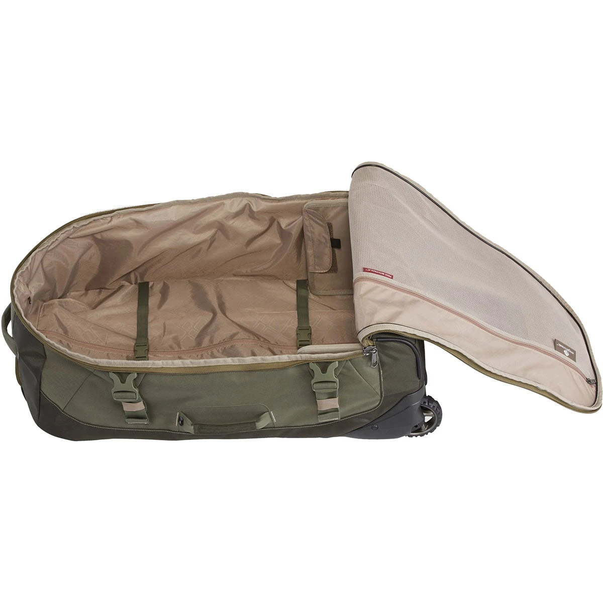 No problem. This large capacity, lightweight wheeled duffel collapses down more than 50% for easy storage. Built durable and covered by Eagle Creek’s No Matter What™ Warranty.