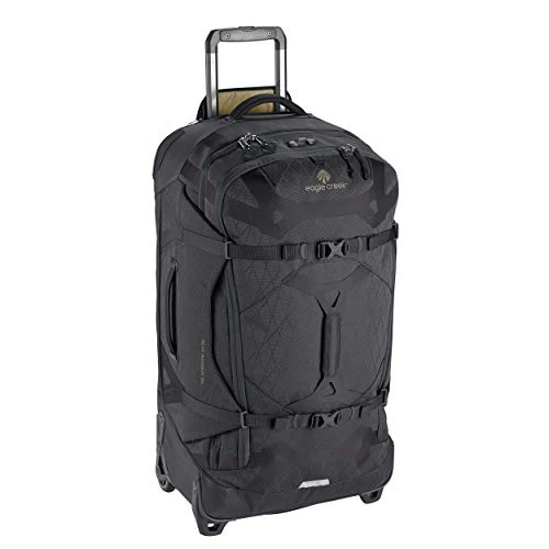 Details: Eagle Creek Gear Warrior Rolling Duffel Bag. This luggage offers ample room with 95 liters of packing space and organized storage. Featuring water resistant material, versatile carrying straps and the option to transport on two wheels, this duffel is ready to help you explore the world.