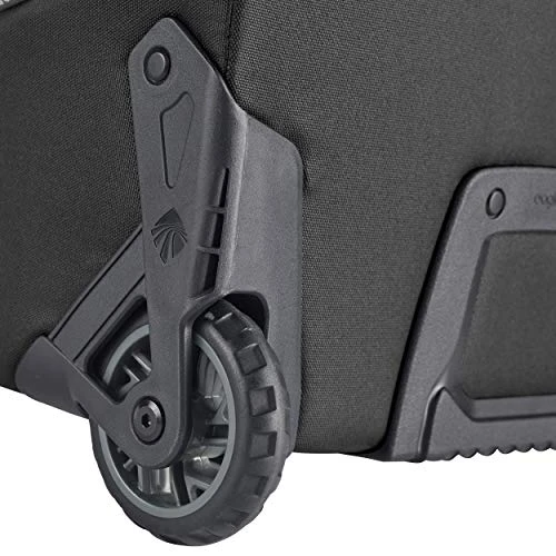 - DURABLE TRAVEL. Equipped with two rolling spinner wheels, this duffel allows your luggage to effortlessly glide from rom the airport to the street, and the street to gravel. The oversized treaded wheels provide luggage great grip and traction on tough terrain.