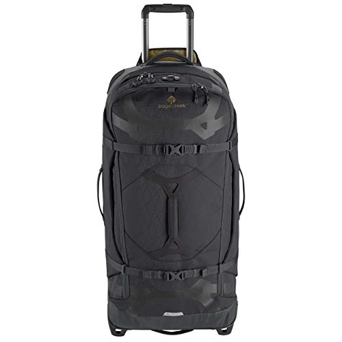 Details: Eagle Creek Gear Warrior Rolling Duffel Bag. This luggage offers ample room with 110 liters of packing space and organized storage. Featuring water resistant material, versatile carrying straps and the option to transport on two wheels, this duffel is ready to help you explore the world.