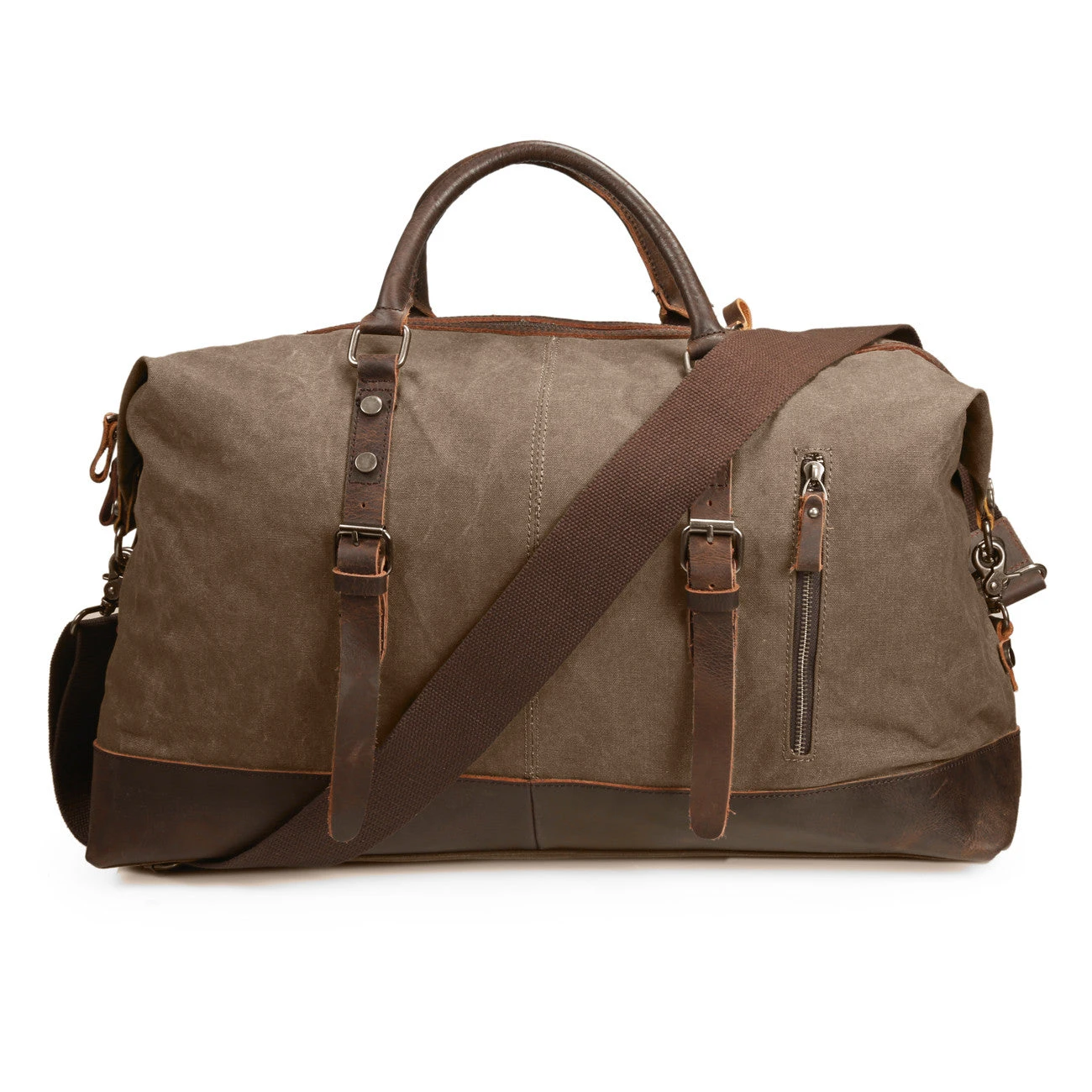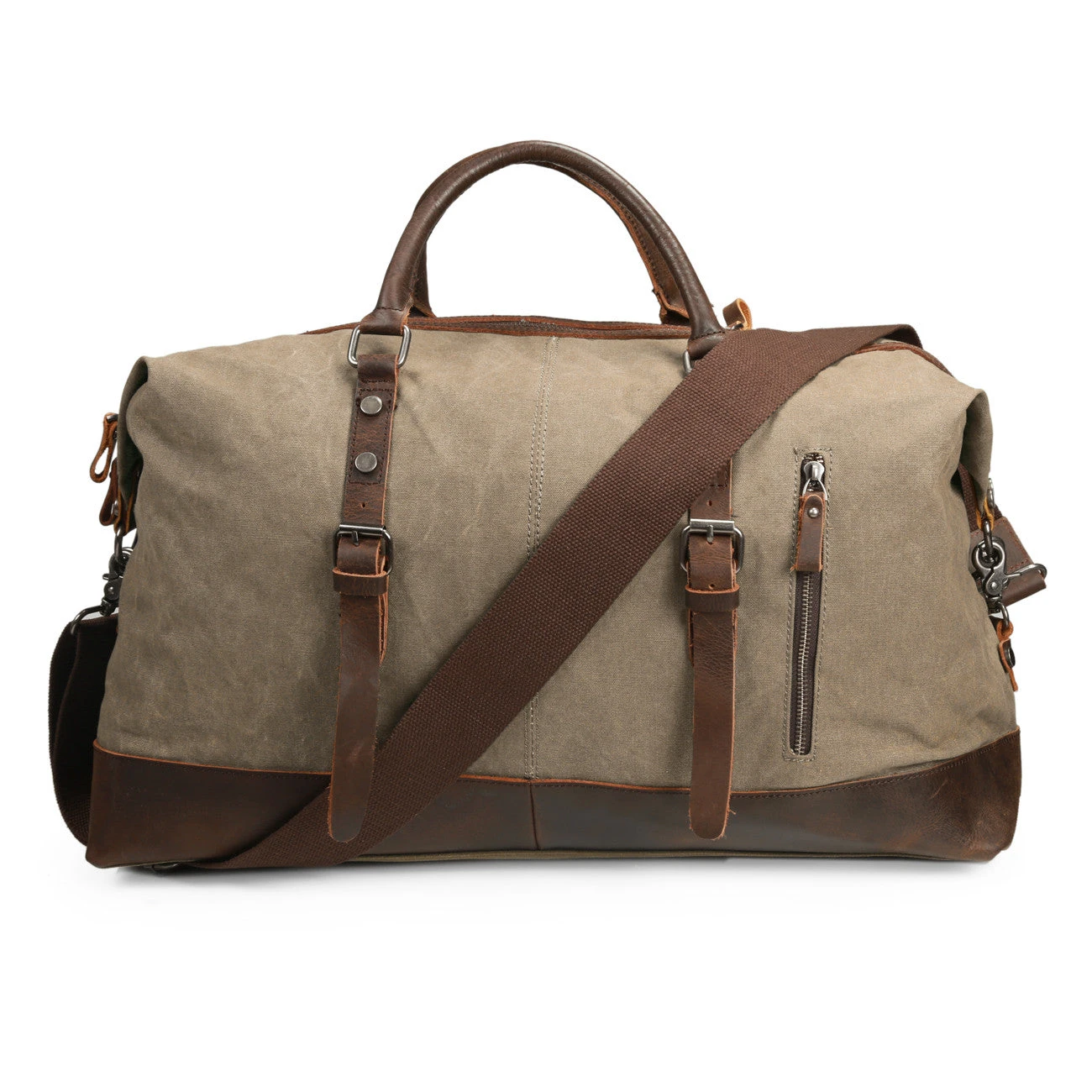 Premium density canvas. top quality genuine leather trim and vintage zinc alloy hardware. is perfect for a weekend trip. overnight traveling. sports etc