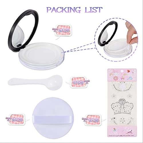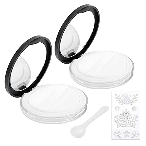 - ❤ Package Contents:2 pieces plastic loose powder containers with soft puff are perfect size for pocket or purses , a filling spoon and one jewels sticker is very suitable for all kinds of DIY decoration on the compacts.