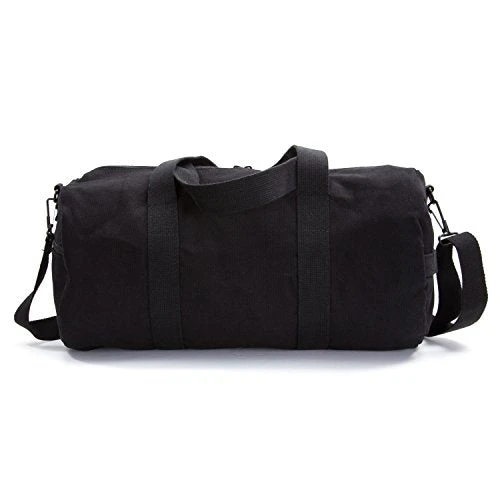 Versatile canvas duffel bag. It has a heavyweight cotton canvas pocket, adjustable shoulder strap, and web carry handles. The medium measures 19″ by 9,” while the large measures 24″ by 12″. It has an enormous main compartment that can fit your weekend’s worth of goodies, or daily activities. It is great for school, work, traveling light, and many more.