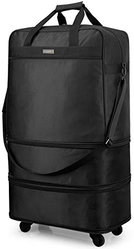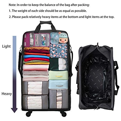 - FOLDABLE: Quality collapsible rolling duffel bag folds down to a compact 17.72″ x 10.24″ x 4.7″ easy-to-store pouch when not in use.