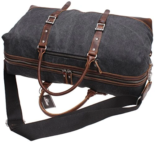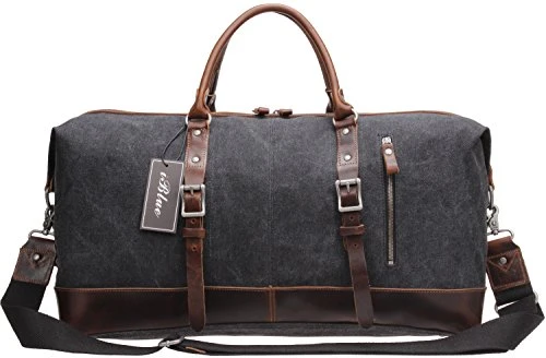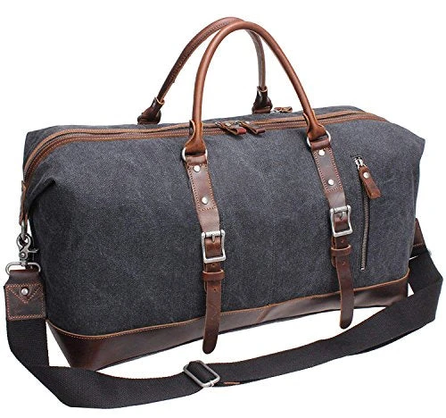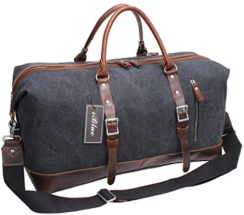 - ✔Material- The Overnight Bag Is Made Of Top Thick Genuine Leather Trim&Heavy Duty Canvas.