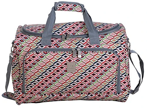 Details: Original Jenni Chan design material. Custom Jenni Chan hardware. Grab and go handle. Front Pocket. Self-repairing zippers. Fully lined interiors. Zippered mesh pocket & other useful pockets inside. Detachable shoulder strap. Rear strap to fit over pull up handle on luggage. Four bottom support buttons.
