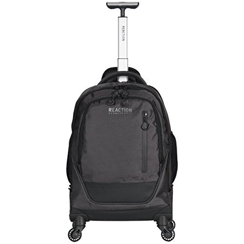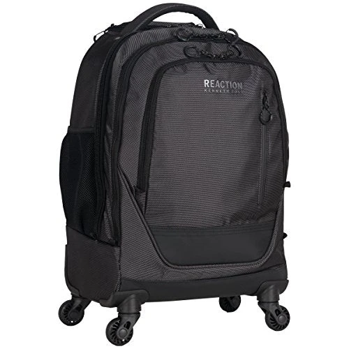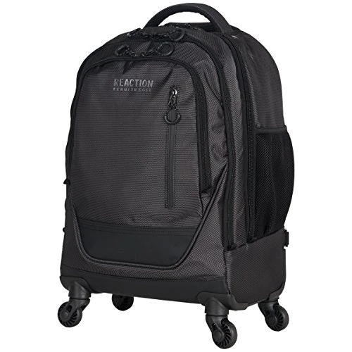 - 1680D polyester & coated polyester double gusset 4-wheel 17.0″ computer backpack. 4-wheel spinners for easy mobility and 360 degree movement. Holds most laptops with up to a 17.0″ screen. Compatible with most tablets. 1680D polyester and coated polyester exterior body material with fully lined interior. Front exterior pocket features organizer pockets for phone, glasses, and all school/ business needs.