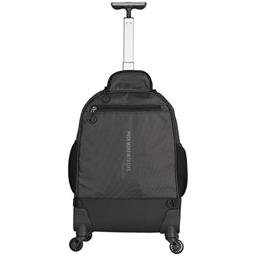 Details: 1680d polyester & coated polyester double gusset 4-wheel 17.0″ computer backpack. 4-Wheel spinners for easy mobility and 360 degree movement. Holds most laptops with up to a 17.0″ screen. Compatible with most tablets. 1680d polyester and coated polyester exterior body material with fully lined interior. Front exterior pocket features organizer pockets for phone, glasses, and all school/ business needs. Front compartment used for laptop and tablet protection with room for files or other documents. Rear compartment includes a file pocket and garment straps to secure clothing. Side exterior features dual beverage/ accessory Holsters. Eva padded, easy to grab top handle. Telescoping, retractable single Tunnel tube. Breathable Air-Mesh padded shoulder straps. Hide away shoulder straps for convenience. Manufacturer lifetime limited warranty. Overall size: 22.0″ h x 14.0″ w x 9.0″ D. Computer compartment Dimensions: 16.0″ h x 10.5″ w x 1.5″ D. Volume: 2100 cu. Inches. Item weight: 5.95 lbs.