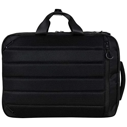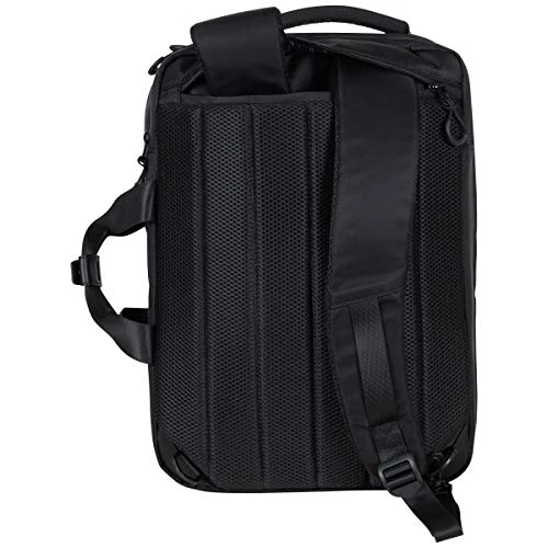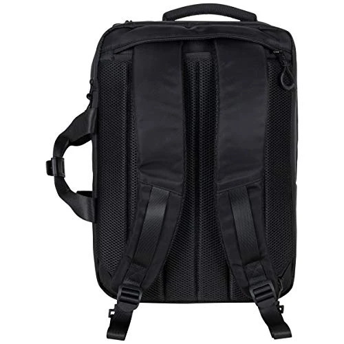- Rear exterior features a padded air-mesh back panel, trolley strap, and adjustable padded shoulder straps.