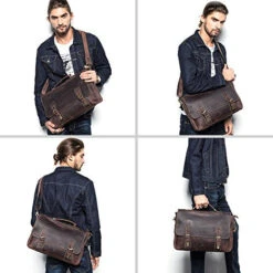 S-Zone Men’S Crazy-Horse Leather Business Briefcase Shoulder Laptop Bag