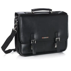 Alpine Swiss Leather Briefcase Dressy Double Buckle Flap-Over Black