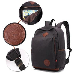 Augur Vintage Canvas Backpack Durable Laptop Rucksack Classic Travel Backpack (Large, Black)