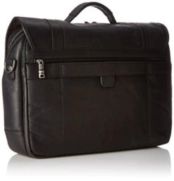 Alpine Swiss Leather Briefcase Dressy Double Buckle Flap-Over Black