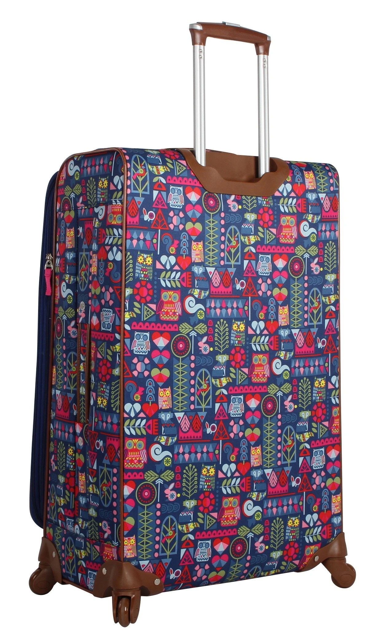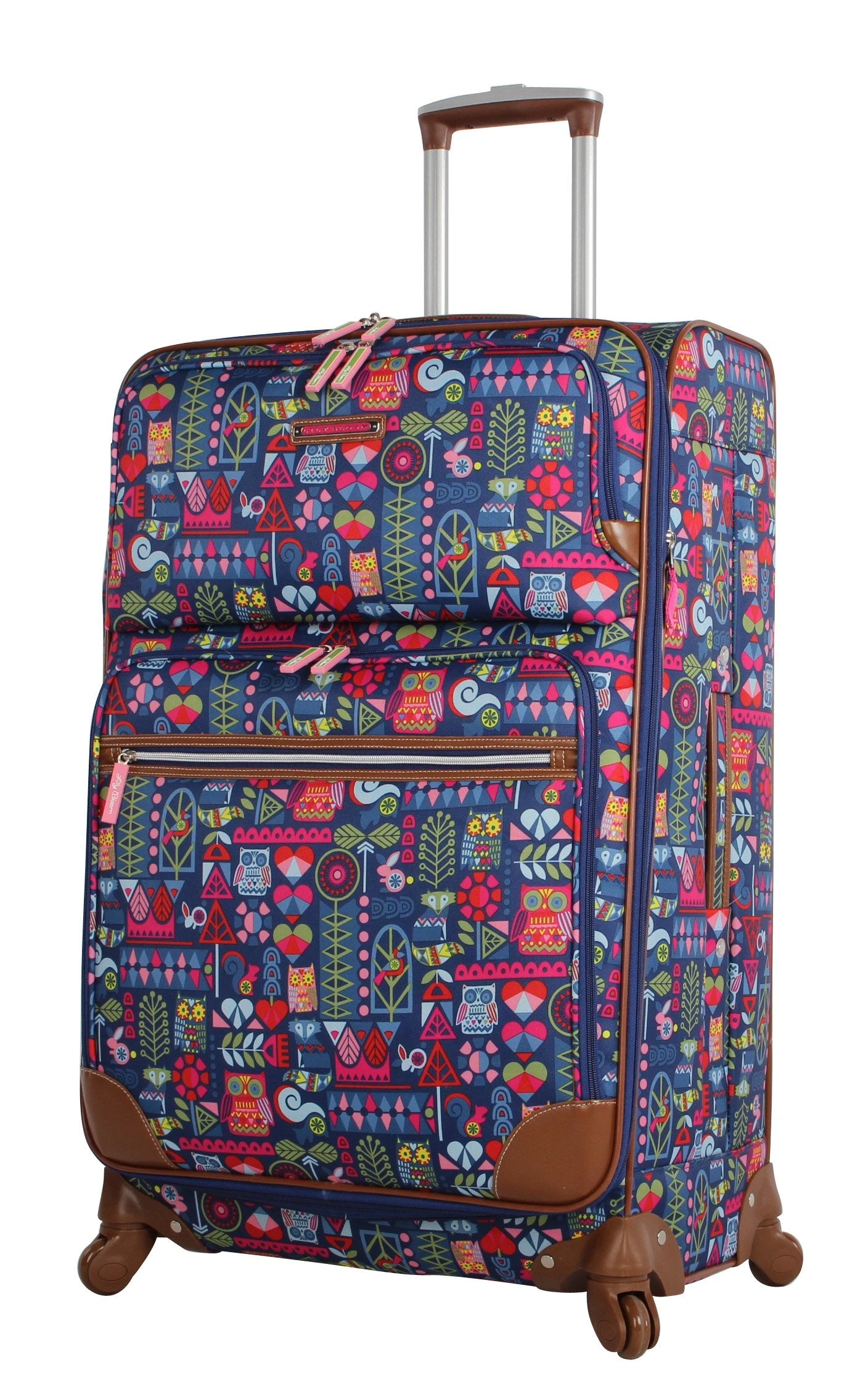 Lily Bloom, a handbag and accessories line focused on sustainable fashion, revels in vibrant colors and feminine prints. Each piece is made from a signature fabric created from recycled plastic bottles. The luggage collection uses only reinforced handle poles for extra strength and durability. The 4 directional spinner wheels allow 360 degree upright rolling in multiple directions so there is little weight on your arm. This is a beautiful piece of traveling art piece for the environmentally conscious modern lady!