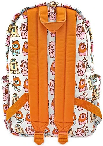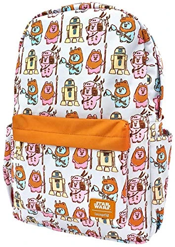 Details: May the forest be with you. Celebrate the adventures on Endor when carrying the Loungefly X Star Wars Pastel Ewok AOP Nylon Backpack. Inspired by the furry tree creatures of the Star Wars franchise, this astronomical festival backpack features a strong nylon construction, wonderful pastel hues, adventurous all-over Ewok sketch print, exterior front pocket, top handle, adjustable straps and top zip closure. This galactic Disney backpack is the perfect companion to take with you on every important space mission.