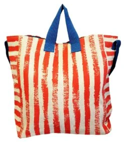 101 BEACH – 2 IN 1 Cross-Over Large Tote Bag – Custom Embroidery (Red Stripe – Blue Trim)