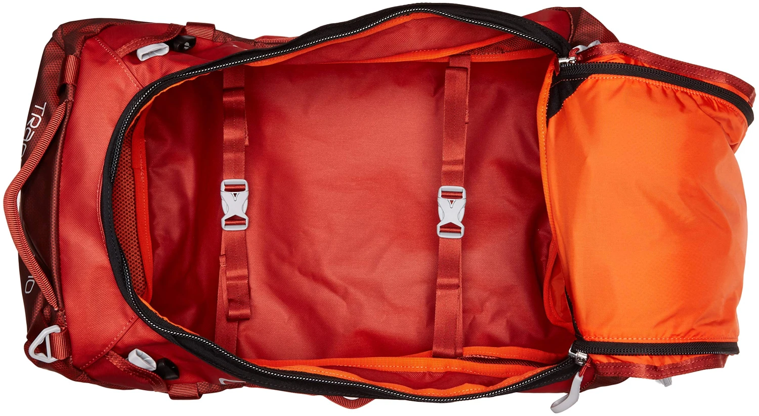 - Dual-zippered 3-D end pockets with overlapping rain flaps for quick access to smaller items