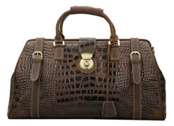 Polare 21″ Crocodile Pattern Cowhide Leather Weekender Travel Overnight Luggage Duffel Bag