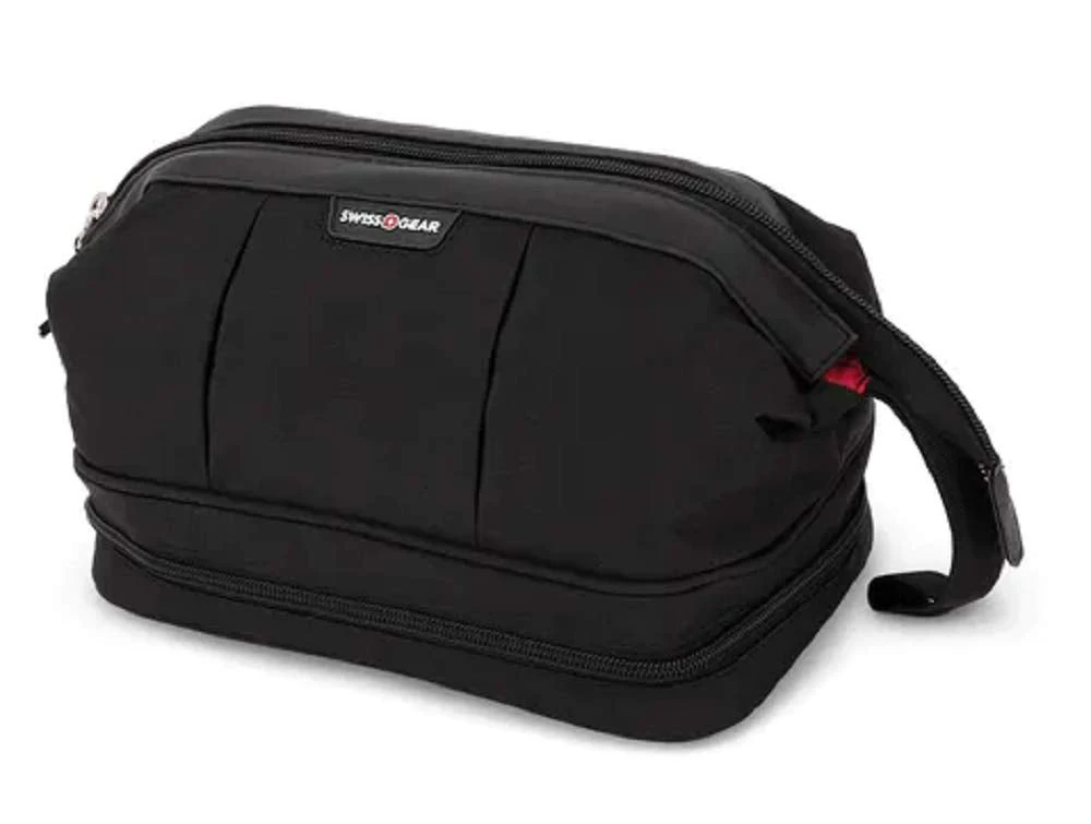 Details: A lot of toiletry bags can have you feeling like you’re fumbling in the dark, which is what makes this new model from SWISSGEAR so special. This 2-compartment dopp kit has fantastic design cues for such a small bag. The main compartment utilizes a metal frame that allows the bag to open wide without collapsing on itself, for easy visibility and access to its contents. Besides having a firm bottom, the lower portion of the bag unzips completely like a clamshell for a whole separate compartment, ideal for storing lotions, shampoo, toothbrushes and similar items, and it has a stretch mesh pocket for other grooming tools like a brush or comb.