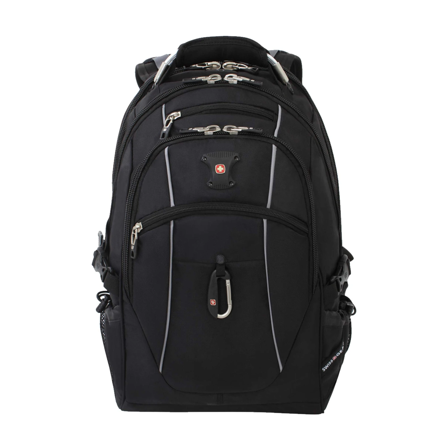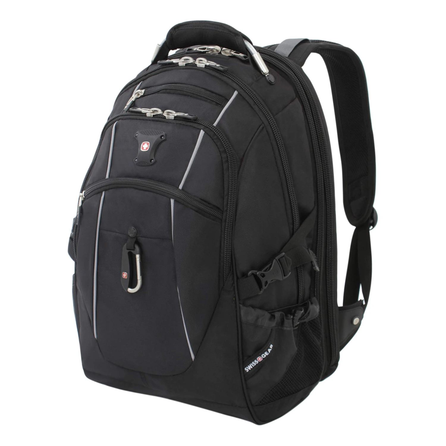 Details: For the absolute ultimate in organization and day to day carrying convenience, the four compartment SWISSGEAR 6677 ScanSmart Laptop Backpack has what it takes to get the job done. Starting with ScanSmart technology, this backpack comes with a dedicated laptop computer compartment that is airport friendly, allowing you to keep most computers up to 17″ in size safe and in the backpack when passing through security. Simply unzip the backpack to a flat position and place the bag onto the TSA checkpoint X-ray belt. It’s as easy as that. The bag also has a large-capacity main compartment with a built-in TabletSafe tablet pocket, a full-featured organizer compartment and a quick-access zippered front compartment for more frequently needed items. But it doesn’t stop there. The backpack also has an internal cords & cable pocket, external water bottle pockets as well as a fleece-lined top pocket that is perfect for a pair of glasses or a mobile phone. Other features built into the case include a padded, wire-reinforced top handle, a carabiner to attach gear to when you’re on the go, adjustable side compression straps and a heavily-padded back panel with Airflow ventilation technology. In addition, with this bag you count with padded, contour-shaped shoulder straps with mesh fabric and built-in suspension for hours of wearing comfort. And for those times when you’re traveling with wheeled upright luggage, you can even place the backpack over the upright’s telescopic handle without having to worry whether the bag will fall to the ground.