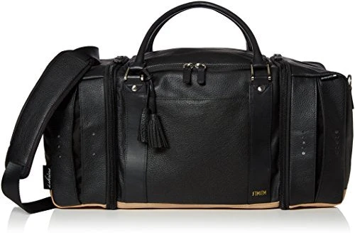 - EXTERIOR FEATURES; Body is a combination of Black Brazilian Tumbled leather with Accents of Black Matte Brazilian Top Grain Leather; Bottom panels are Brazilian Vegetable Tan Leather; Soft padded/removable Airmesh shoulder strap ; Black YKK Nylon coil zippers are smooth ; Lining is 420D Nylon Twill ; Quick-access front and rear velcro pocket for phone or passport; Polished Silver Metal hardware; Heated gold ‘FTMITM’ embossed logo; Black leather tassel for accent; Complies with most international airline carry-on size requirements; Comes in a nude colored dustbag for storage