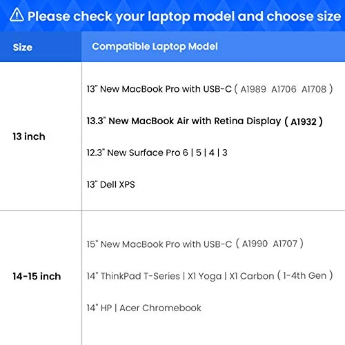 - Maximum fit model size: 13.75 x 9.48 in; Perfect fit 15″ New MacBook Pro with Touch Bar Late 2016 – 2018 (A1990 A1707); Also compatible with 14″ ThinkPad T-Series/X1 Carbon 1-4th Gen/X1 Yoga | 14″ HP Acer Chromebook