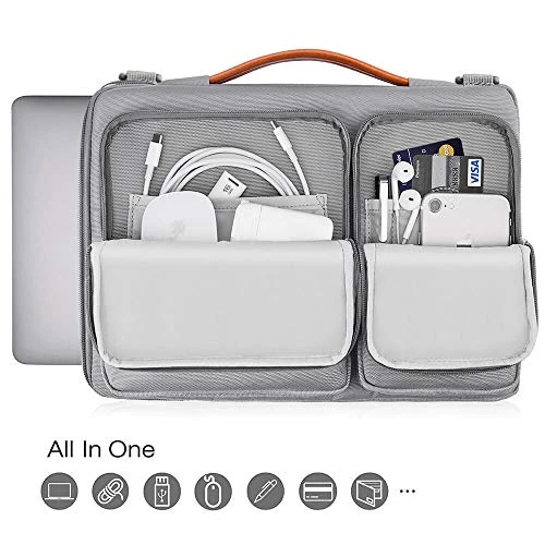 Soft material thick pad, fully-adjustable detachable shoulder strap and top Leather handle provide maximum comfort and perfect fit for everybody; The detachable padded shoulder strap allow you to use it as a handbag or a sleeve in your Backpack