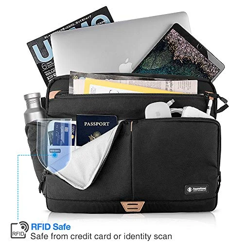 - [New Release] For 13″-15.6″ Laptop – The shoulder bag is compatible with 15.6″ laptop, 10.5″ iPad pro with Apple Pencil, etc. External Dimension: 16.30″ x 12.60″.