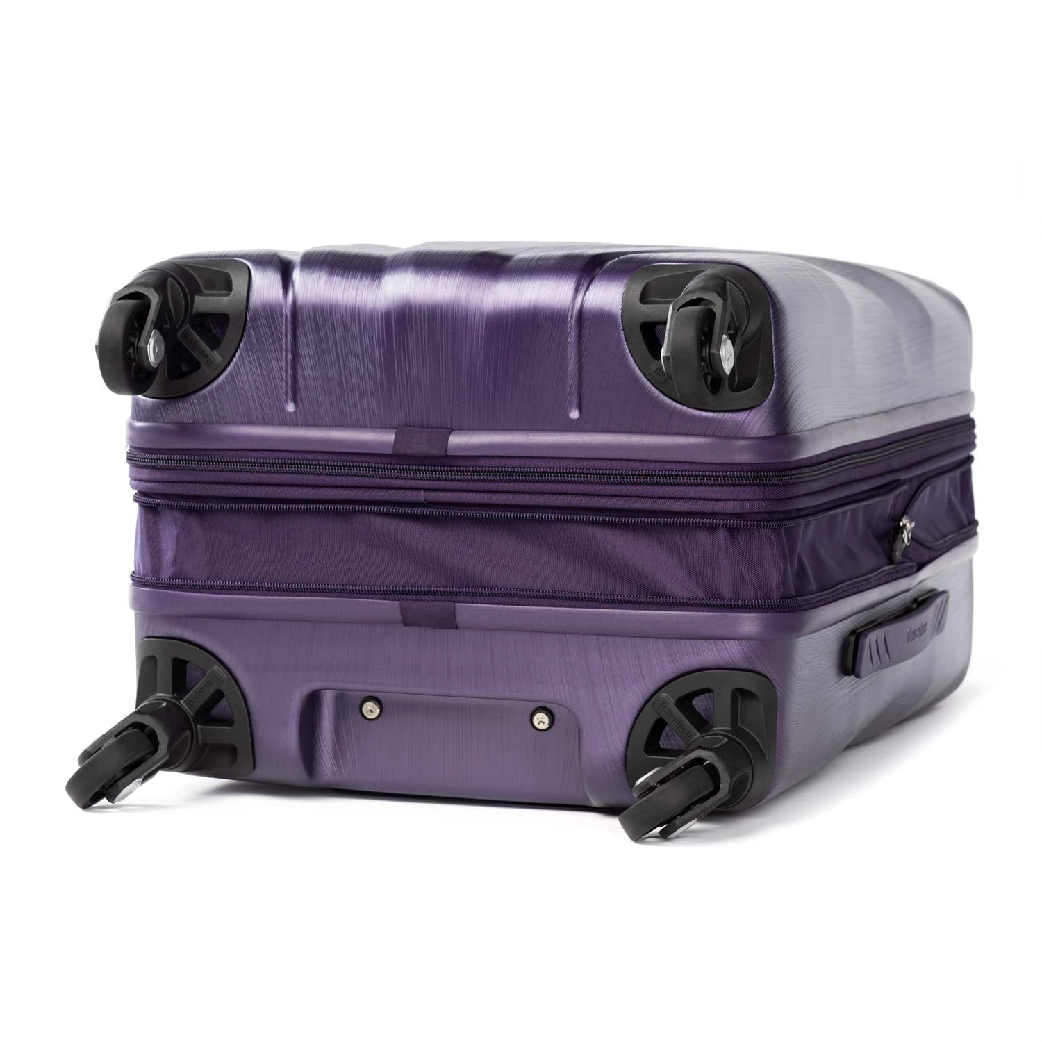 Details: Finally, an expandable, hardside carry-on bag that is ultra-durable and ultra-light! The Maxlite 5 expandable carry-on hardside spinner is designed to meet carry-on size restrictions for most domestic airlines while maximizing how much you can pack inside with its convenient 2” expansion option. The ultra-durable, ultra-lightweight polycarbonate shell is specifically engineered to be flexible upon impact, protecting contents while resisting cracking or splitting. Additional exterior Features help protect the bag from wear and tear, including the shell’s textured surface, which helps reduce visible scratching or scuff marks, and molded corner Guards that serve as built-in bumpers on high-wear points. An integrated TSA-compliant lock keeps contents secure and allows authorities to unlock and relock the suitcase without damage when needed for inspection. This bag is great for shorter and medium-length trips, with a split case Construction and interior divider panel that provides separate packing compartments. Elastic hold-down straps keep everything in its place. Roll with ease on four 360° spinner wheels guided by the lightweight, height-adjustable PowerScope Lite handle with comfortable Contour grip. Backed by Travelpro built for a lifetime limited with our trusted companion promise.