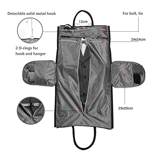 - 2.Two in one bag: locking zippers transform a suit garment bag into a carry on duffel. No sliding with the thoughtful design of self locking zipper(updated and improved version). Portable for traveling with a suit and luggage.