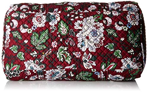 Vera Bradley has crafted the perfect size, carryon compliant duffel to fit everything you need for your next adventure. The Iconic Large Travel Duffel is the fashionable solution for storing your travel essentials, packing efficiently, and avoiding checked bag fees – measuring 11.5 inches high, 22 inches wide, and 11.5 inches in diameter. The interior of this spacious duffel features one zip pocket and three elastic mesh pockets. Skip the extra carry on and take advantage of these pockets to organize your cosmetics, hair products, jewelry and other toiletries. The exterior features one zip pocket, a charger pocket, and three slip pockets that are perfect for stowing your travel essentials – wallet, phone, boarding passes, reading material, and snacks. Keep your most important items at your fingertips with pockets positioned for quick access and soundly fastened for your flight. The Iconic Large Travel Duffel keeps you hands-free so there is plenty of room for adventure. With a 15 inch strap drop, you can grab the dual straps on the go or throw over your shoulder for hands-free attention – either way, the top zip closure keeps your personal items securely protected. Whether it’s a weekend getaway or a girl’s trip, Vera Bradley has designed this necessity for every traveler. Crafted with our lightweight signature cotton, you can use the duffel to upgrade your organization or fold flat to pack as an extra travel bag. When quality material meets precise craftsmanship, you get a bag made to last through all of life’s journeys. Care: Machine wash cold, gentle cycle, use only non-chlorine bleach as needed; line dry