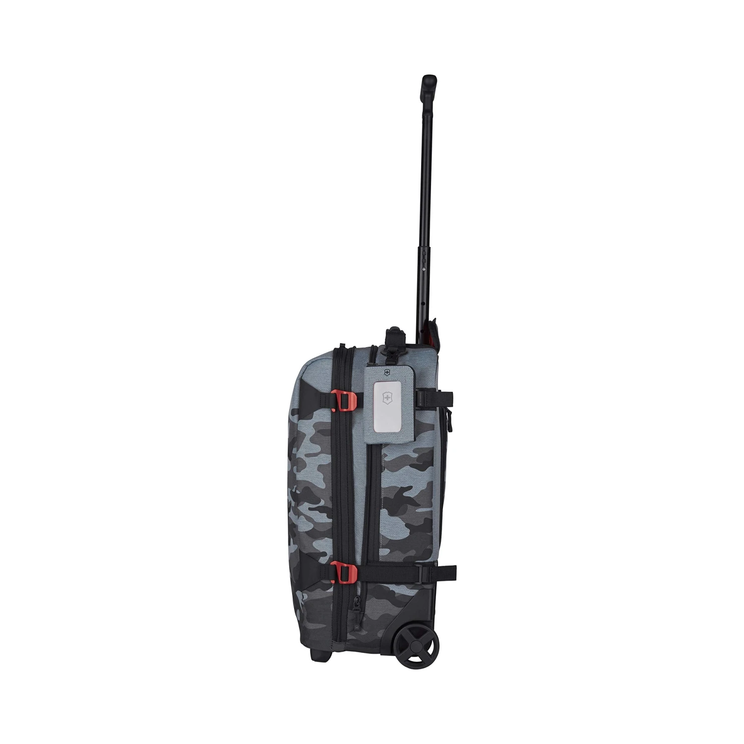 Details: The VX Touring collection. The VX Touring wheeled carry-on is designed for adventure, this carry-on size wheeled duffel is lightweight and full of function. One-touch, monopole handle system with ergonomic comfort grip locks into three different positions to accommodate travelers of various heights and zips away when not in use. Compact design of the monopole handle allows for maximum utilization of interior packing space. Inline wheels for a smooth and stable roll. Spacious main compartment with large U-shaped opening expands 3 cm (1.1″) for additional capacity. Interior organization includes Y-shaped webbing compression straps, a large zippered mesh lid pocket and a zippered mesh side pocket containing a key fob and storage slots. Exterior organization includes a padded front compartment sized to hold up to a 15.6″ Laptop, a zippered quick-access side pocket and two rear, easy-to-clean, wet/dry pockets ideal for storing running shoes or dirty clothes. Adjustable side compression straps with durable Hypalon attachments cinch to stabilize heavy loads. Rear skid plates provide protection to areas most prone to abrasion. Removable attach-a-bag strap secures an additional bag to the front of the duffel and holds up to 13.6 kg (30 lbs). Top and side haul handles and bottom grab slot for easy carrying. Lockable zippers with Hypalon pulls. Removable luggage tag. Travel Sentry Approved combination lock secures belongings and allows airport security screeners to open the lock without destroying it and relock it after inspection. travel Sentry Approved. lock allows yours. Tsa screeners to open the lock without destroying it, and relock it after inspection designed for adventure. this carry-on size wheeled duffel is lightweight and full of function. Size: 23 x 36 x 57 cm. lightweight. The lightest weight Victorinox carry on yet at 5.18 pounds.special features front pocket holds a laptop. ergonomic comfort grip handle. interior zippered mesh storage pocket and horizontal compr