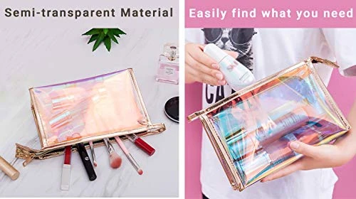 - ✔【SEMI-TRANSPARENT】The see-though design allows you to locate what you need easily with little effort. You will never have to waste time digging through the entire cosmetic bag just to find what you need!