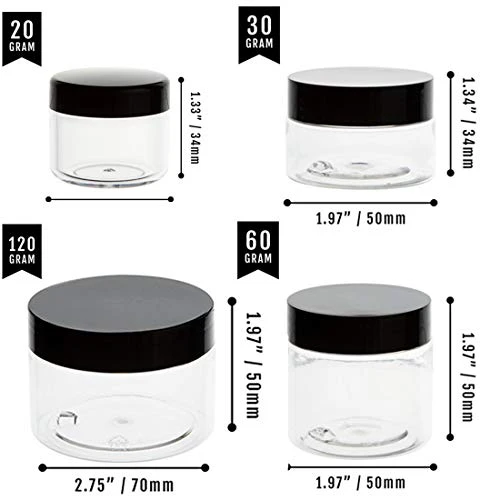 - ✿Attraction from transparency: These empty jars are made of good quality clear plastic(PP lid & PET body) that is BPA free. Crystal clear jars show off the contents inside, making it easier to distinguish. These 2OZ jars can help you store small things, making everything neat and orderly.